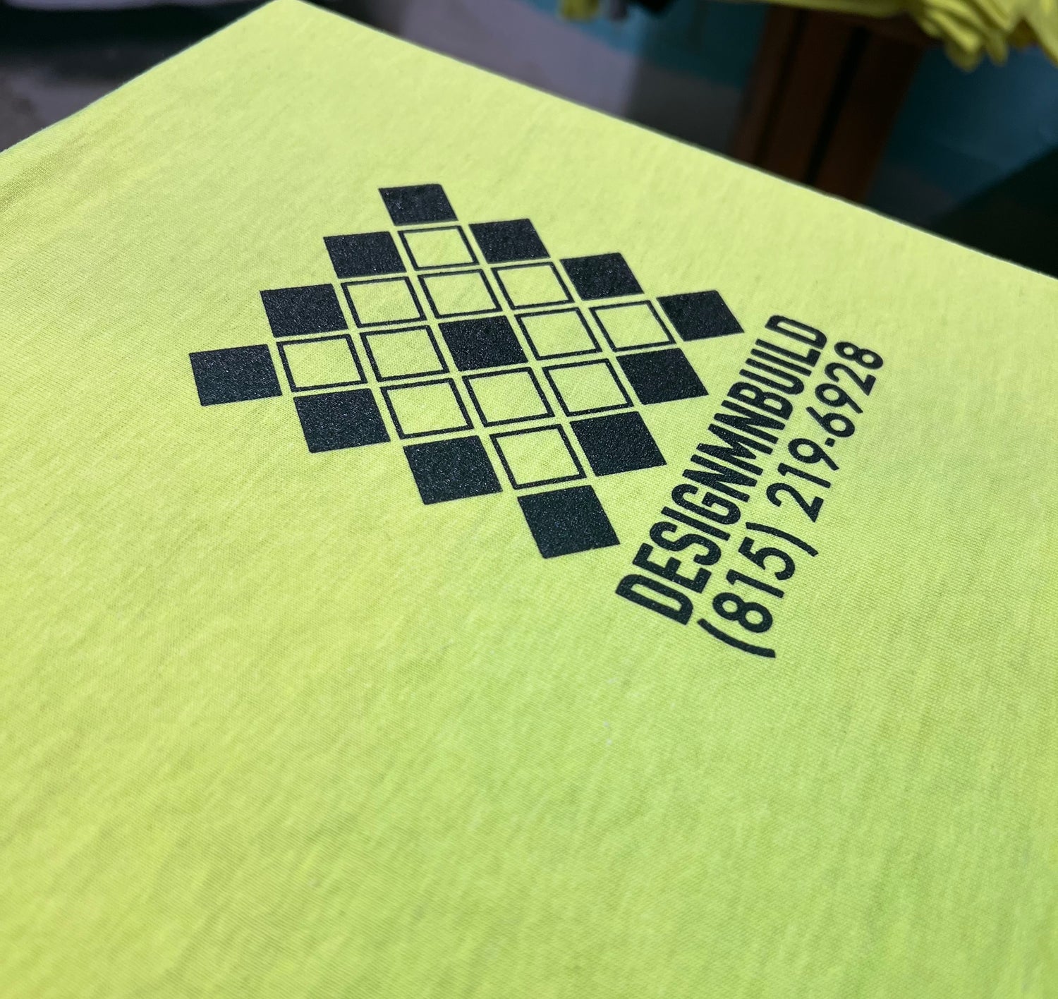 Screen Printed - White, Black, Custom Green plastisol ink on Next Level CVC Tee